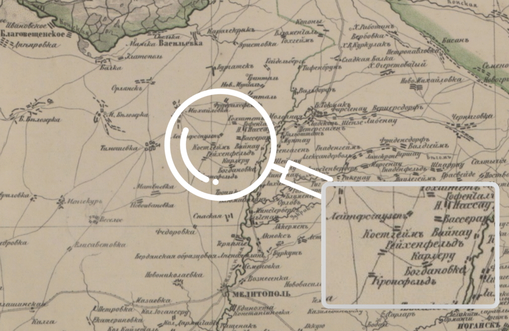 Ще до початку повномасштабної війни ми з групою ентузіастів краєзнавчої справи відвідали декілька сіл Запорізької області, які в минулому були німецькими колоніями. Це села Показне (німецька назва Костгейм) та Плодородне (німецька назва Райхенфельд). Обидва села були засновані в 1810 році вихідцями з Бадена, Ельзаса, Пфальця, Вюртемберга та знаходились в Молочанському колоніальному окрузі.